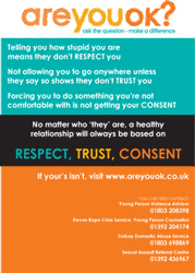 The consent campaign was aimed at young people with the intention of getting them to think about their relationships. One of the main messages we wanted to get over is that a healthy relationship should be based on respect, trust and consent. We compiled a quiz that helped them to question certain behaviours that they may experience.